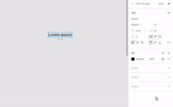 The text tool is something you will use all the time. Figma defaults to Roboto 12pt. You can change that (and much more) in the Design panel on the right side of your screen. It’s also good to note that Figma has the whole Google Fonts library built-in, while Sketch does not have that. You will have to download the fonts you wish to use if they aren’t already on your Mac if you're using Sketch.
