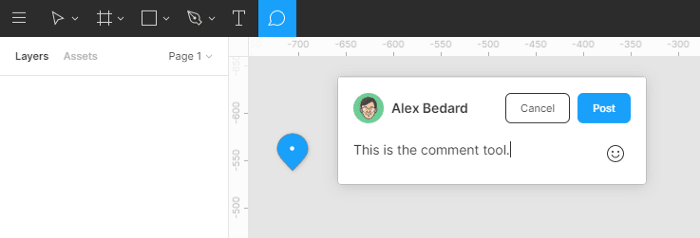 This is quite straightforward. With the Comment tool, you can leave a comment anywhere on your screen. It’s especially useful when you work with other people, or if you want to leave yourself some notes. Sketch does not have this feature.
