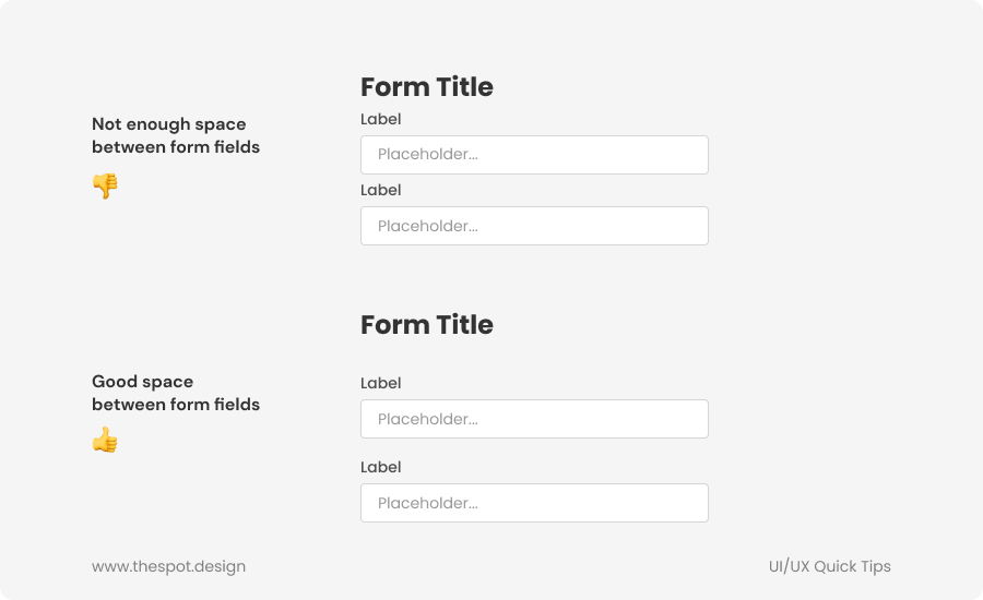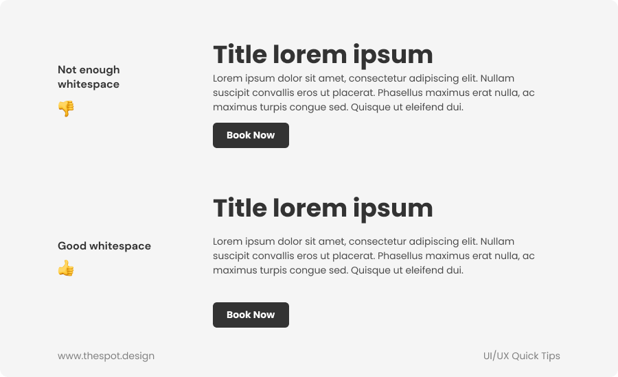 Whitespace is vital in UI design. Proper spacing will make it more obvious what content and information is grouped together, and what isn't.