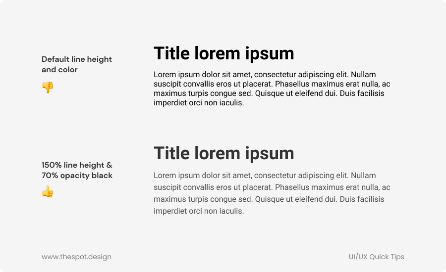 A good trick if you use Figma is to put 150% in the line height field for your body text, and use a dark grey color (or black at 65-70% opacity. This is ideal if your text is on a colored background).
