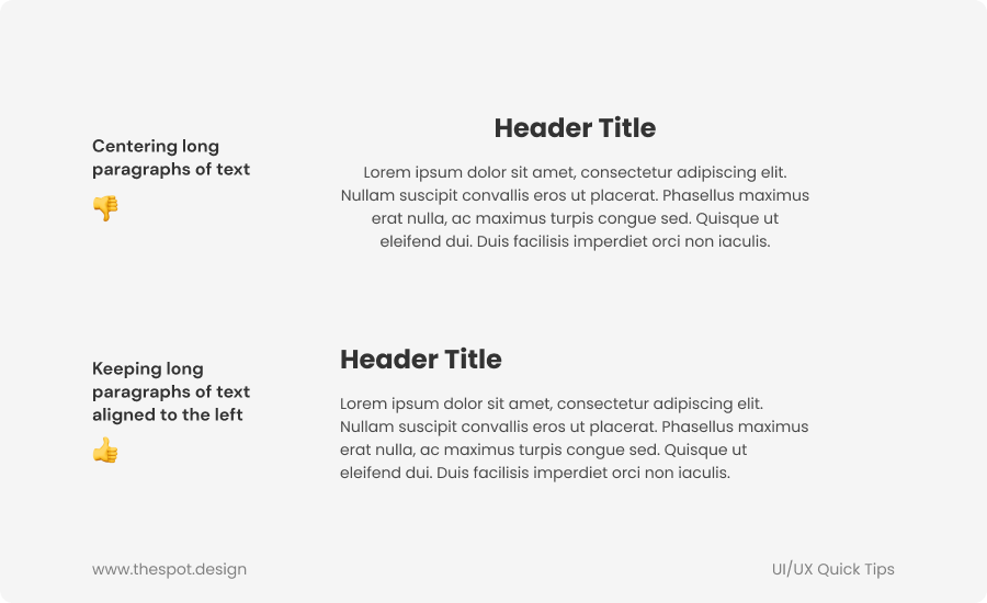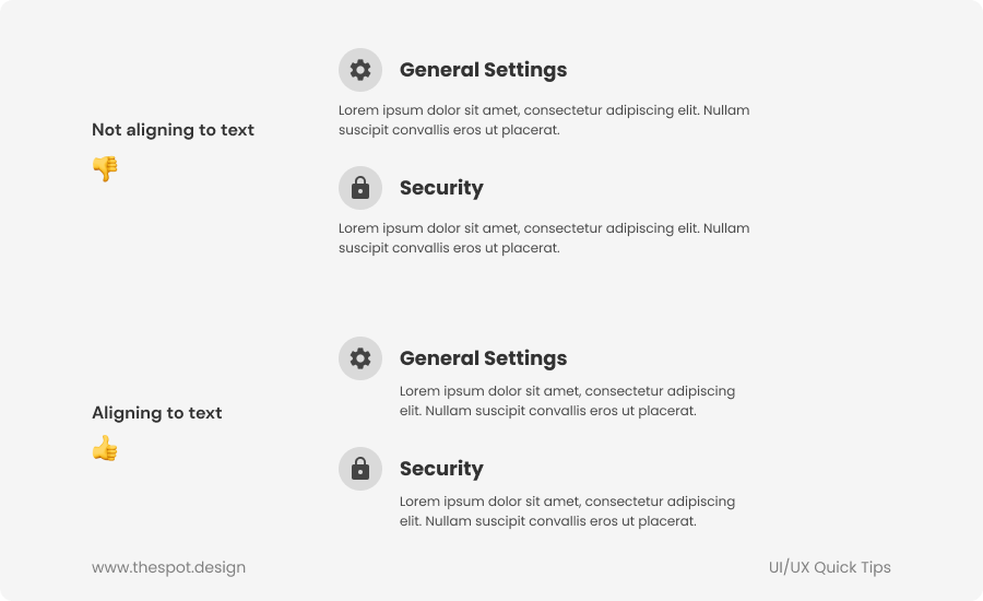 Align your text to other text to make things easier to read and navigate as it keeps the reading line consistent.