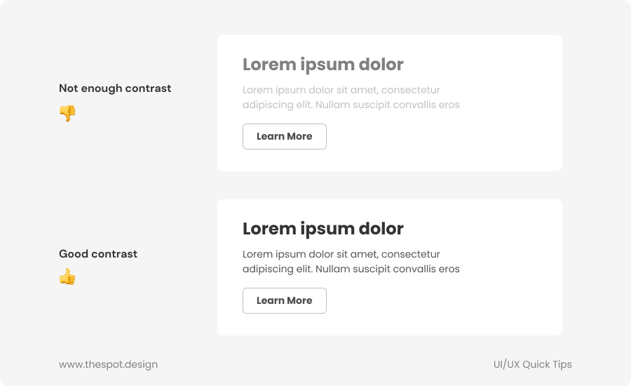 Contrast in design is very important, so it should not be an afterthought. You should always make sure your elements have proper contrasts, especially text.