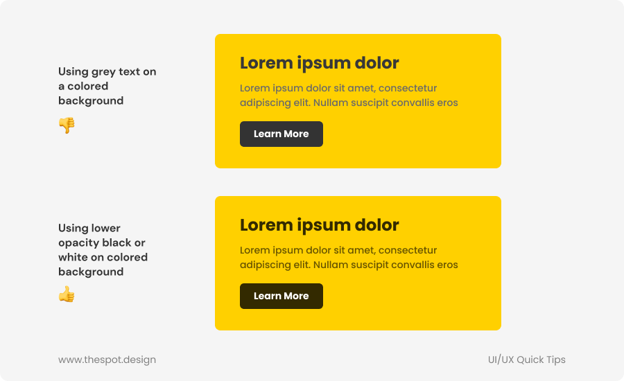 TIP #6: Use lower-opacity black or white on colored backgrounds