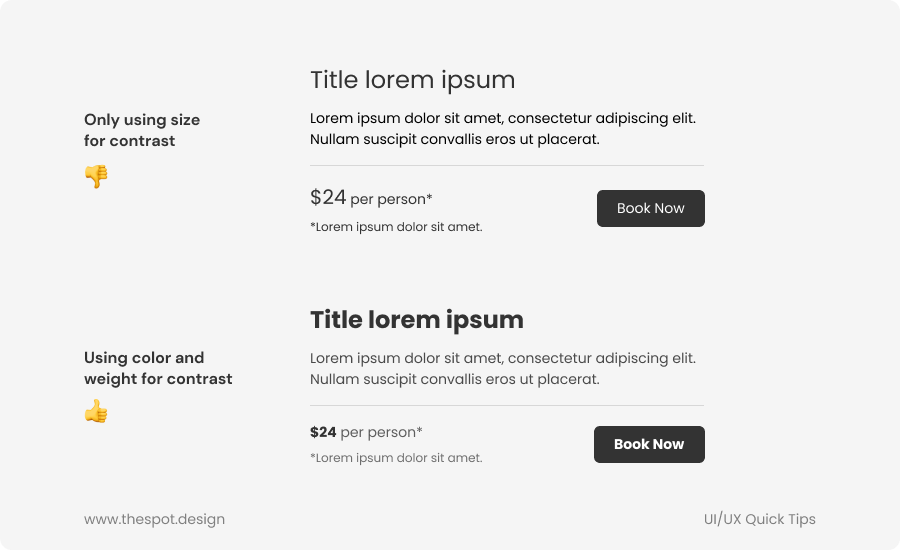 Instead of only using size for contrast in an interface, use different colors and text weights.